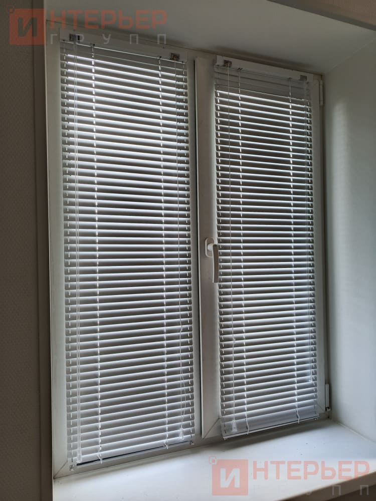 Горизонтальные алюминиевые жалюзи на пластиковые окна – цвет белый